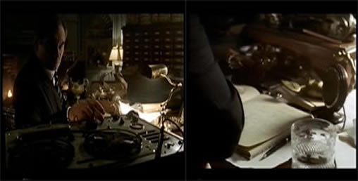 Another Vortexion featured this time in an episode of ITV's Miss Marple. These two stills were taken from the episode entitled "The Citaford Mystery". Can you spot the silly mistakes ? Yep the props dept got this one totally wrong.  Look carefully and you can just make out a Grundig microphone plugged in the totally wrong place. In fact this is where the bias switch should be. This machine was actually being used like this! The Grundig microphone also required a HT polarising voltage and they were designed to be used only with  Grundig machines of the period which had the necessary outlet.